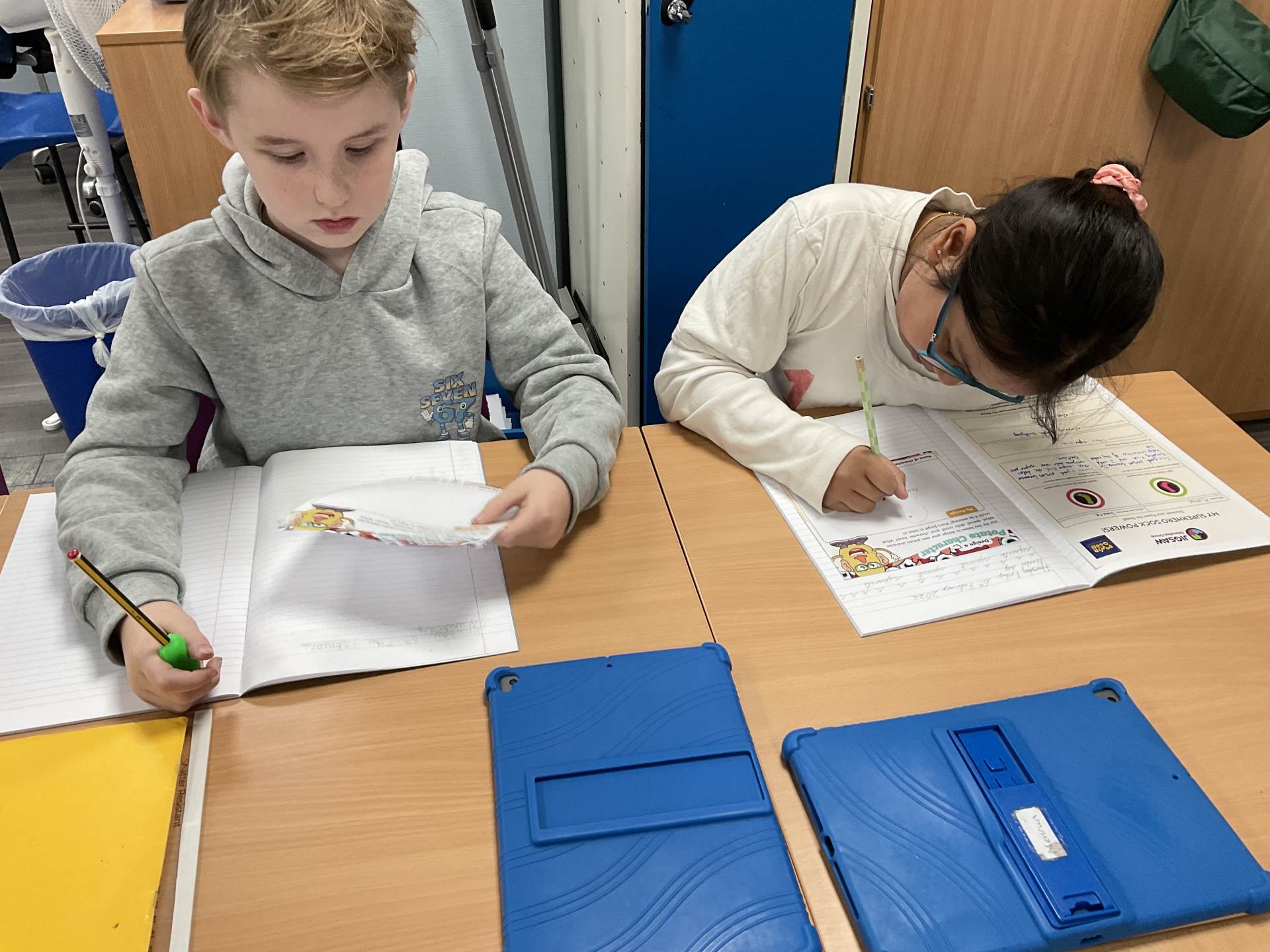 During English lessons children have been designing their own newspapers, comic strips, posters and information leaflets. The skills learnt in art lessons have been invaluable.​